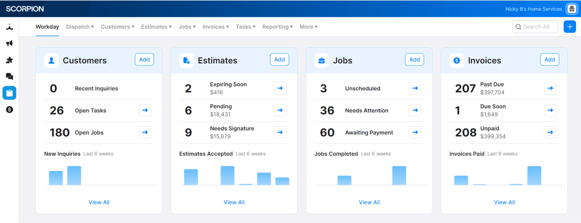 - A top nav that now includes Customers, Estimates, Jobs & Invoices quick access links