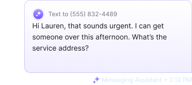Messaging Assistant instantly responds to missed calls, texts, website chats, Facebook messages, LSA leads, and contact forms, 24/7.