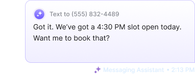 Voice Assistant answers calls with a friendly, natural-sounding AI that qualifies and schedules appointments.